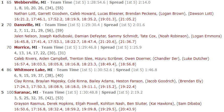 | 1 | | 11 | Madison Volz | Lansing Christian | 138.8 |