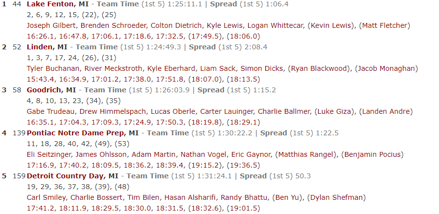 | Detroit Country Day | 15 | 27 | 28 | 30 | 32 | 35 | 39 |