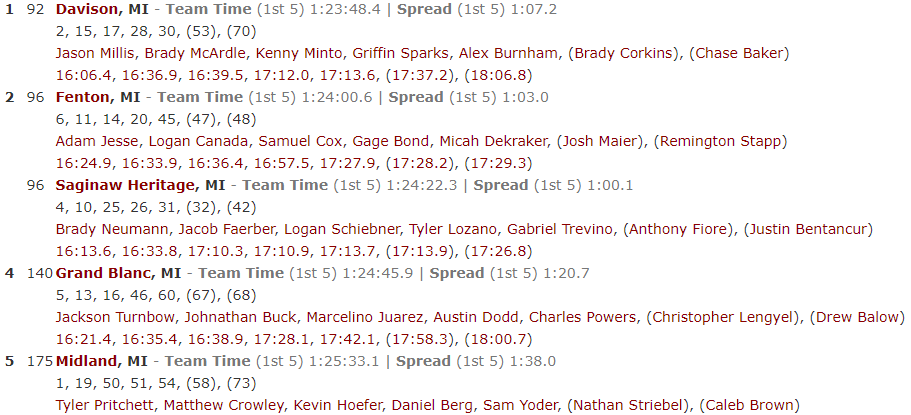 | 5 | 5 | 12 | Jackson Turnbow | Grand Blanc | 187.4 |