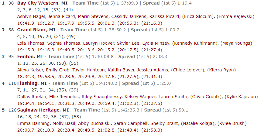 | 5 | 5 | 9 | Lola Thomas | Grand Blanc | 128.0 |