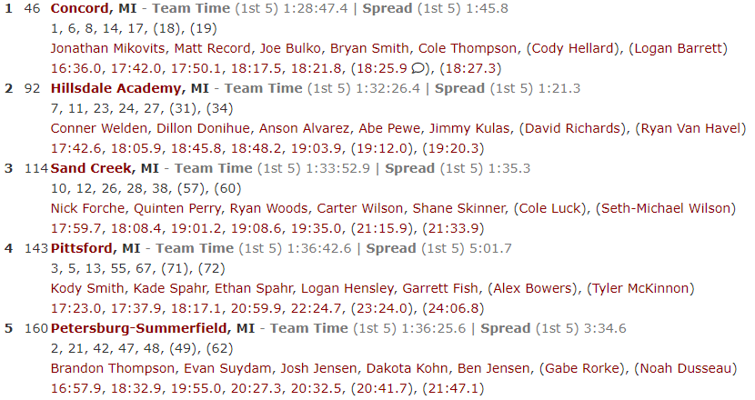 | 12 | 11 | 12 | Dillon Donihue | Hillsdale Academy | 153.1 |