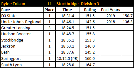 Particularly impressed by that Holly performance, finishing top-10 in a loaded field (Dexter, Brighton, Clarkston, Hartland, Holt, WL Central, Milford, Catholic Central)