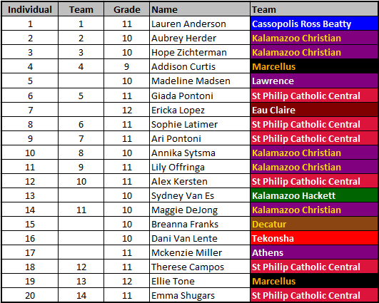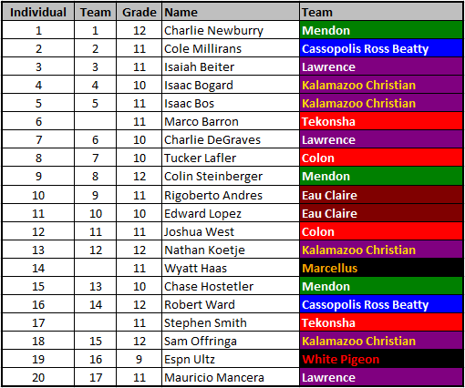 Kalamazoo Christian (15), Mendon (20), Lawrence (22)