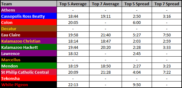 4th place at this regional last year, but his final two races showed why he’s the favorite this year. 19th at State and St. Joseph County Champ, both on the verge of breaking 17:00.