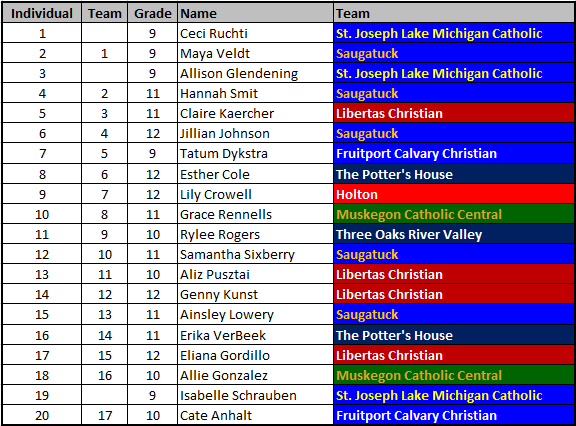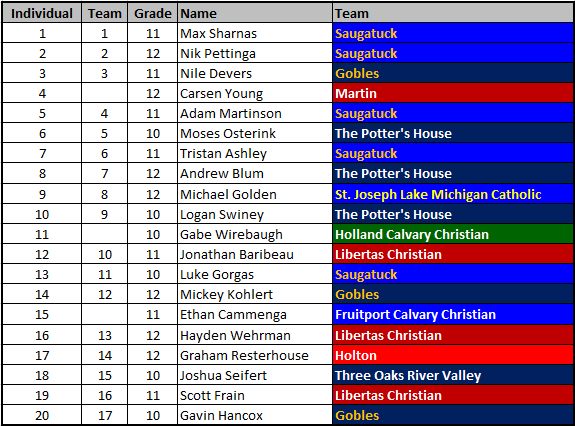 Saugatuck (1), The Potter’s House (14), Libertas Christian (22)