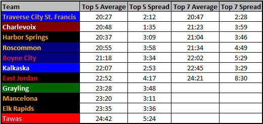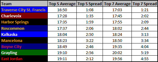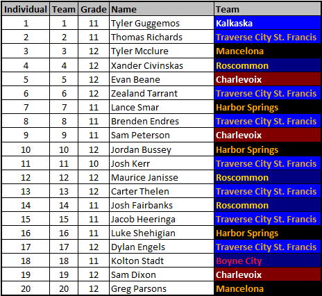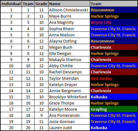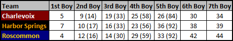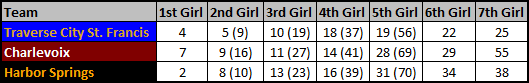 Traverse City St. Francis (1), Charlevoix (8), Harbor Springs (14), Roscommon (19)