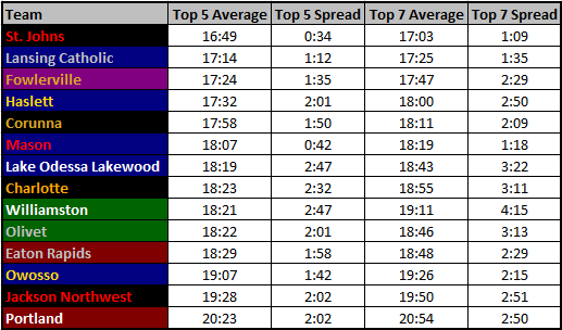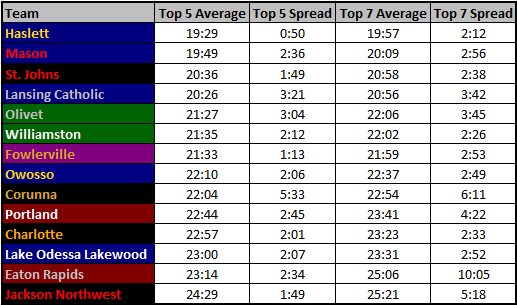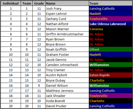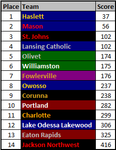 Haslett (5), Mason (10), St. Johns (22), Lansing Catholic (23)
