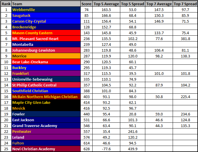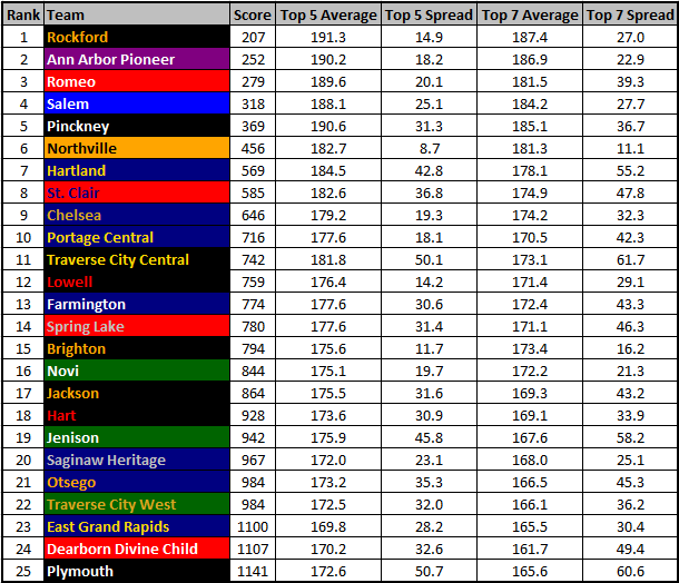 - The team rankings are based on a hypothetical meet.