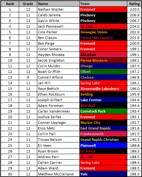 • Currently there are about 5500 boys and 5000 girls with ratings this season.  I’d estimate that’s about 80% of the state.