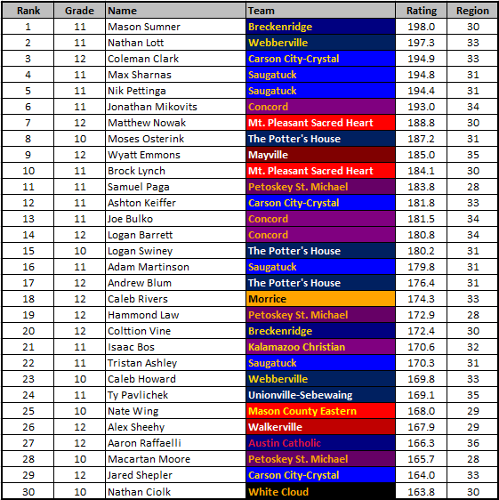• There are some missing, but with more teams mixing with one another and County/Conference Meets soon, hopefully I can get to everyone!