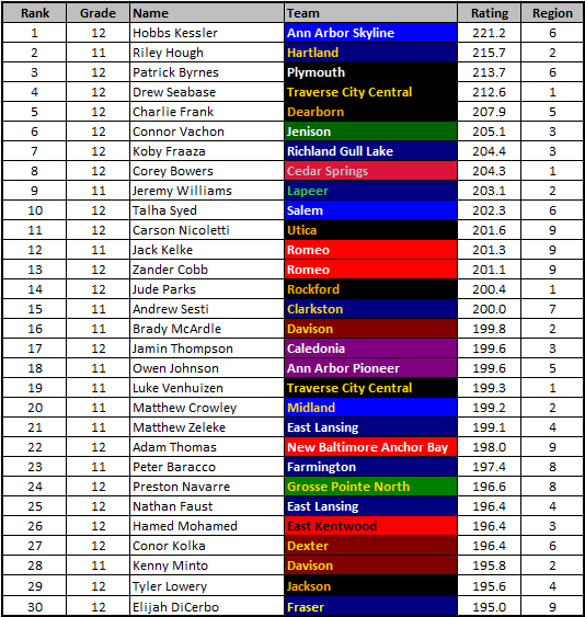Currently there are about 6500 boys and 5500 girls with ratings this season. I’d estimate that’s about 85-90% of the state.