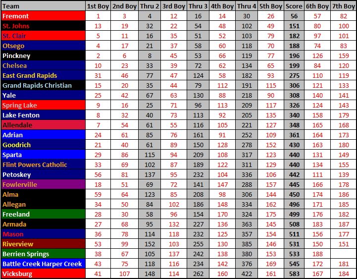 St. John’s appears to be the safest bet of any in the remaining competitors. Their spread is minimal, at the most 0:45. They’ve risen to the occasion in championship meets, claiming an easy victory over East Lansing at the Greater Lansing Meet.