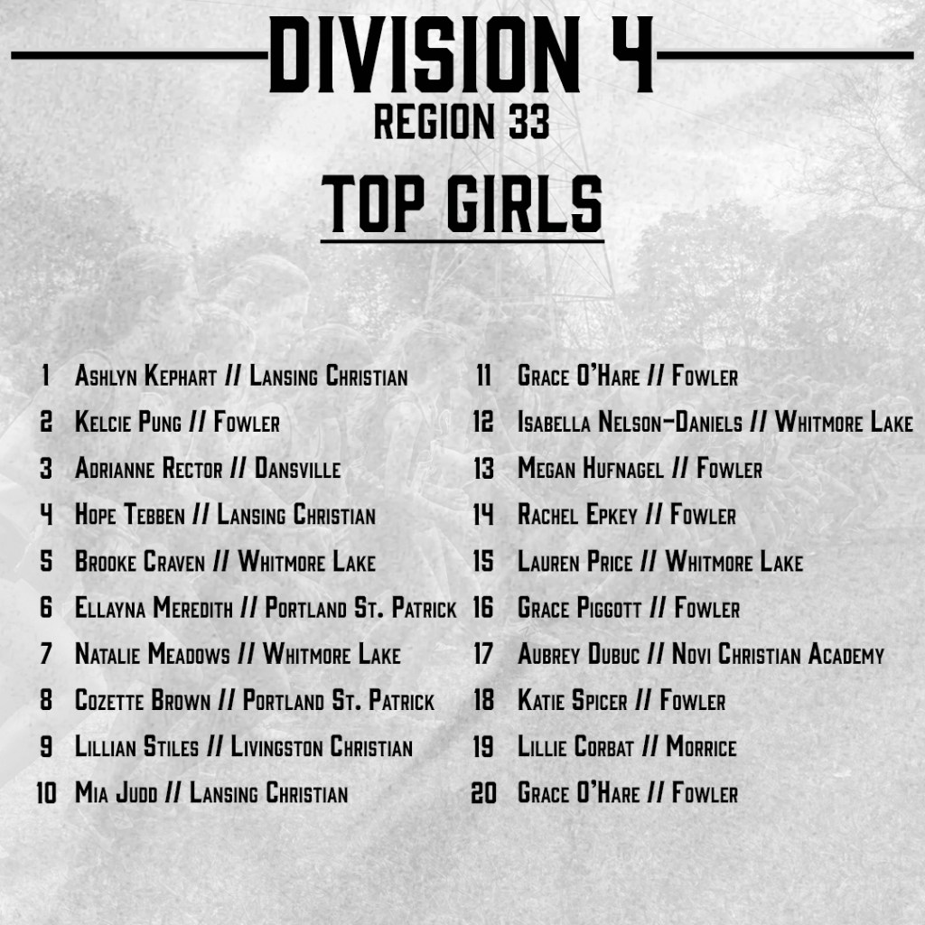 Top 50 Girls (Division 4): Ashlyn Kephart (20), Kelcie Pung (32), Adrianne Rector (40)