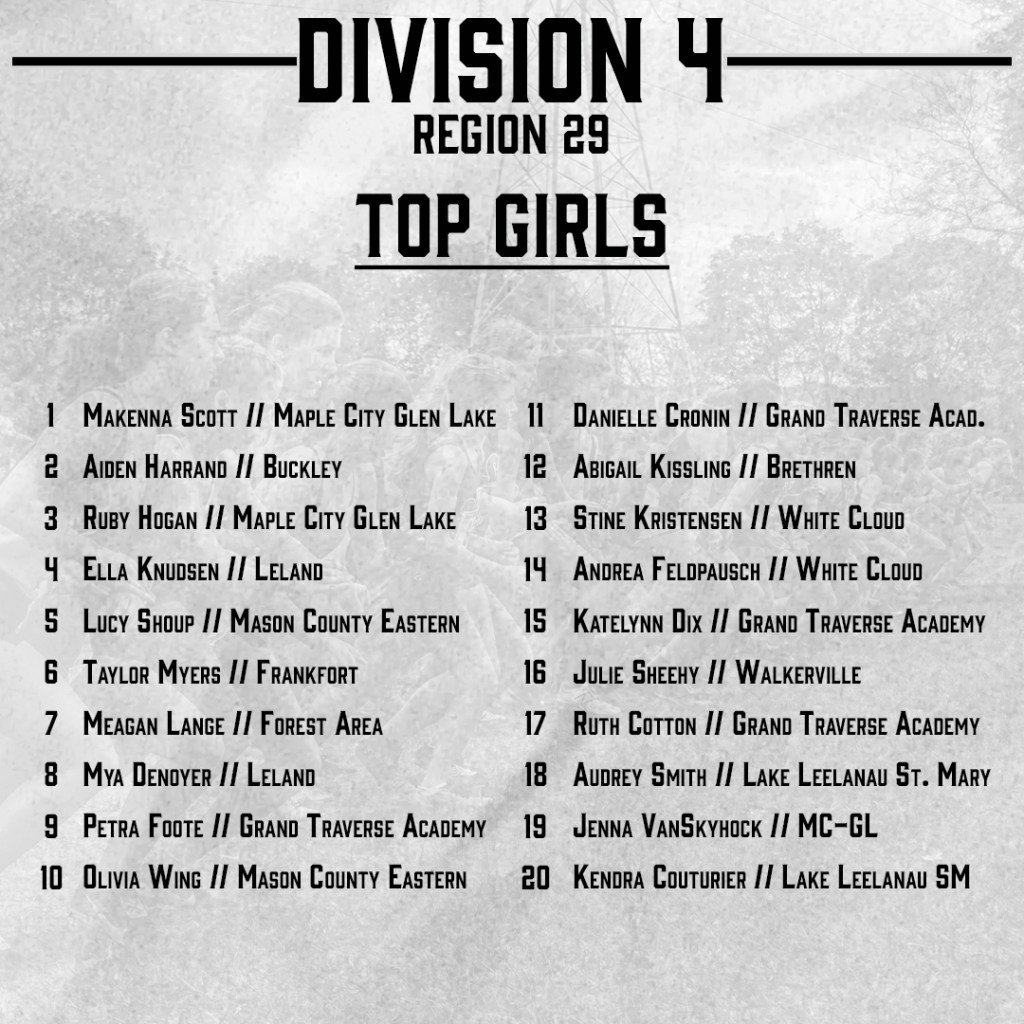 2020 Girls: Grand Traverse Academy, Maple City Glen Lake, Lake Leelanau St. Mary