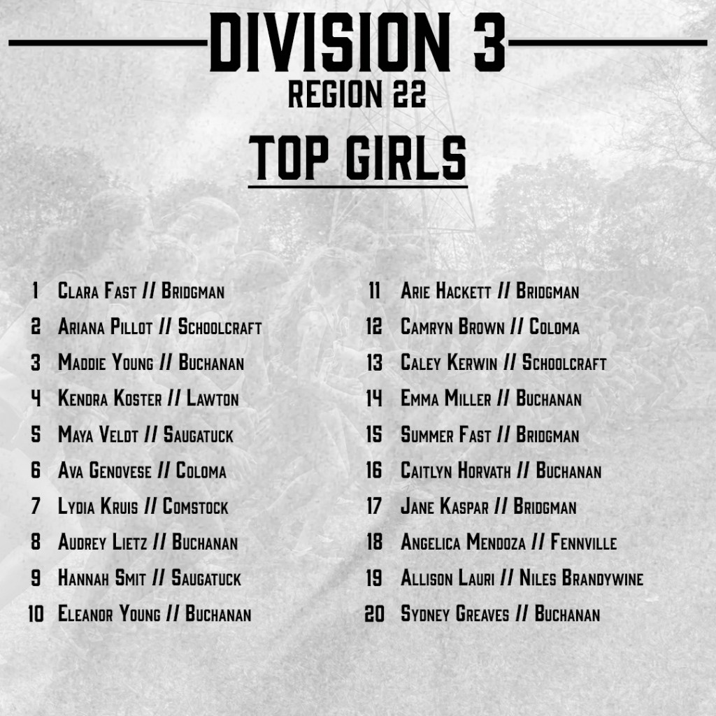 Top 50 Girls (Division 3): Clara Fast (4), Ariana Pillot (33), Maddie Young (39), Kendra Koster (46), Maya Veldt (47)