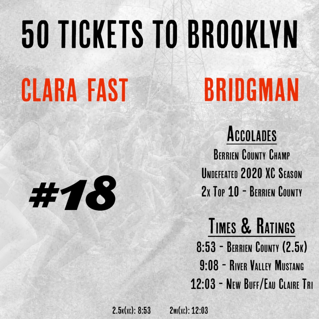 In terms of time, she’s got that, with that 8:53 effort at Berrien County and low-12 efforts at New Buffalo and Riverview Park