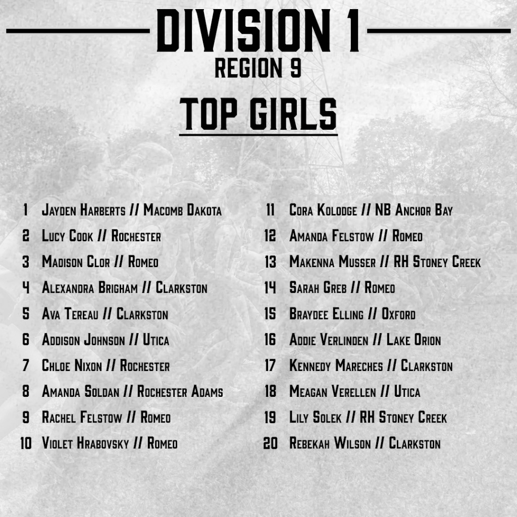 Top 25 Girls Teams: Romeo (Top Four), Clarkston (13)