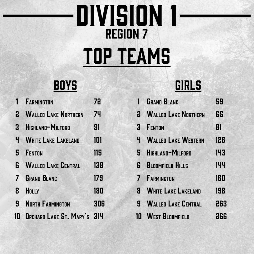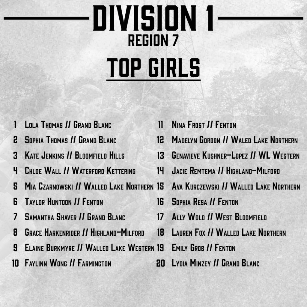 Top 25 Girls Teams: Walled Lake Northern (12), Grand Blanc (14), Fenton (19)