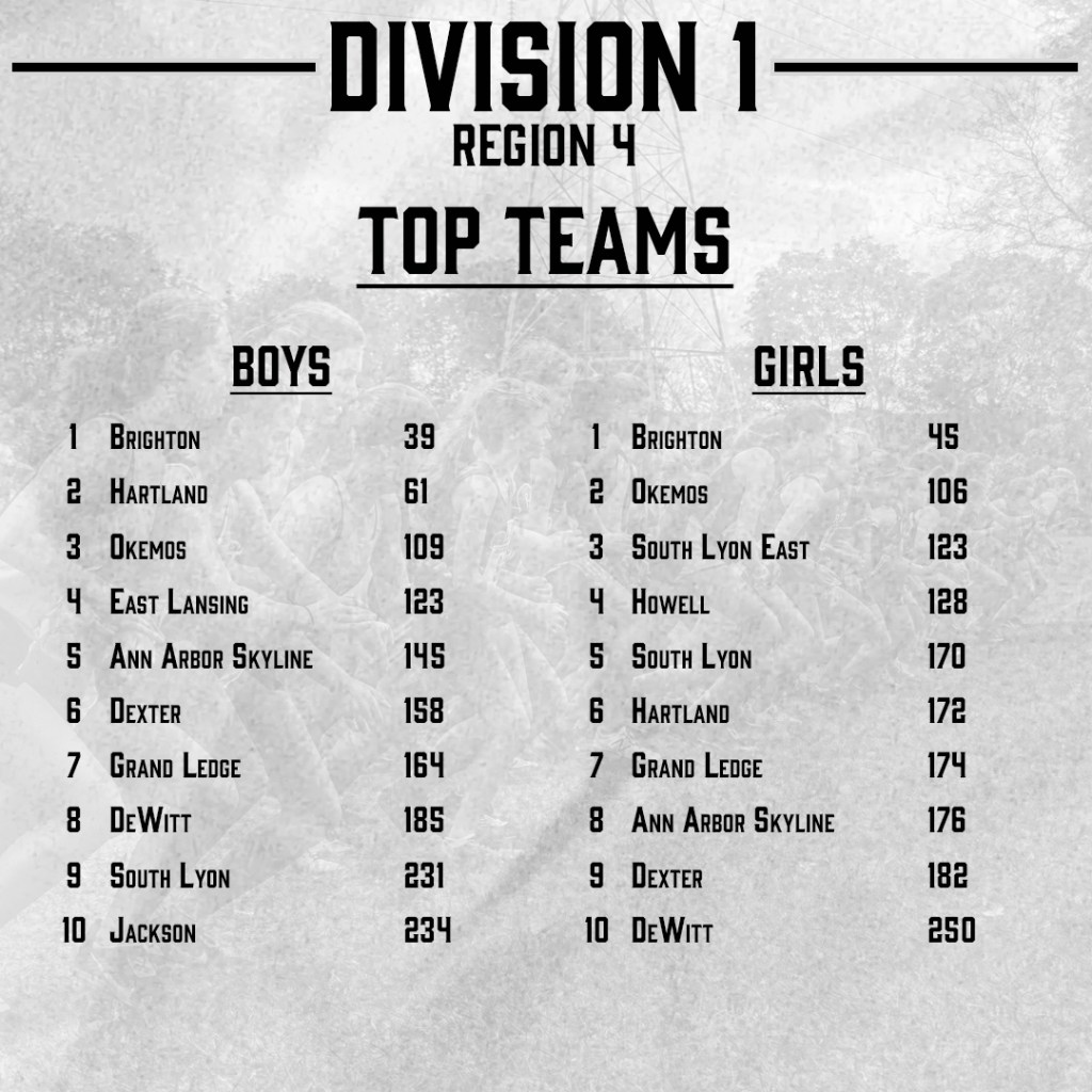 Top 25 Boys Teams: Brighton (Top Two), Hartland (6), Okemos (20)