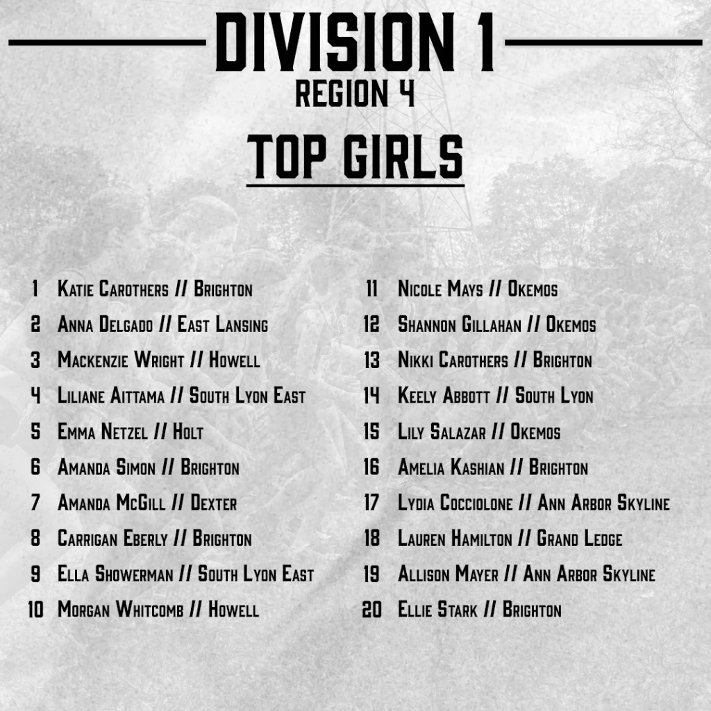 Top 25 Girls Teams: Brighton (7), Okemos (20), South Lyon East (25)