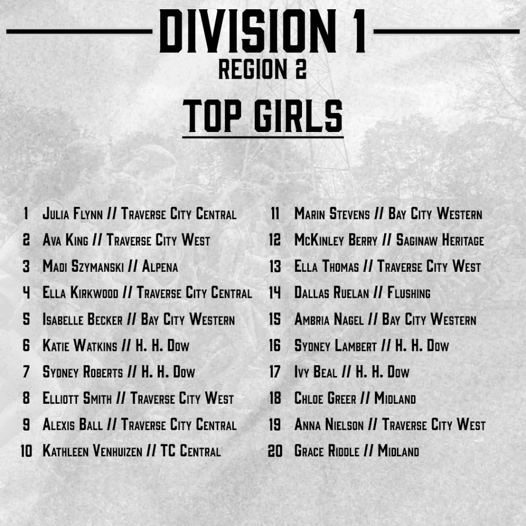 Top 25 Girls Teams: Traverse City Central (5), H. H. Dow (9), Traverse City West (16), Bay City Western (17)