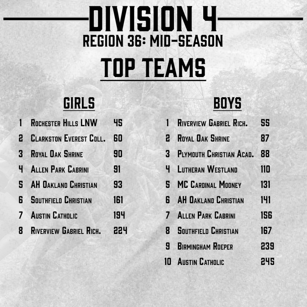 Boys: Royal Oak Shrine, Plymouth Christian Academy, Auburn Hills Oakland Christian, Austin Catholic