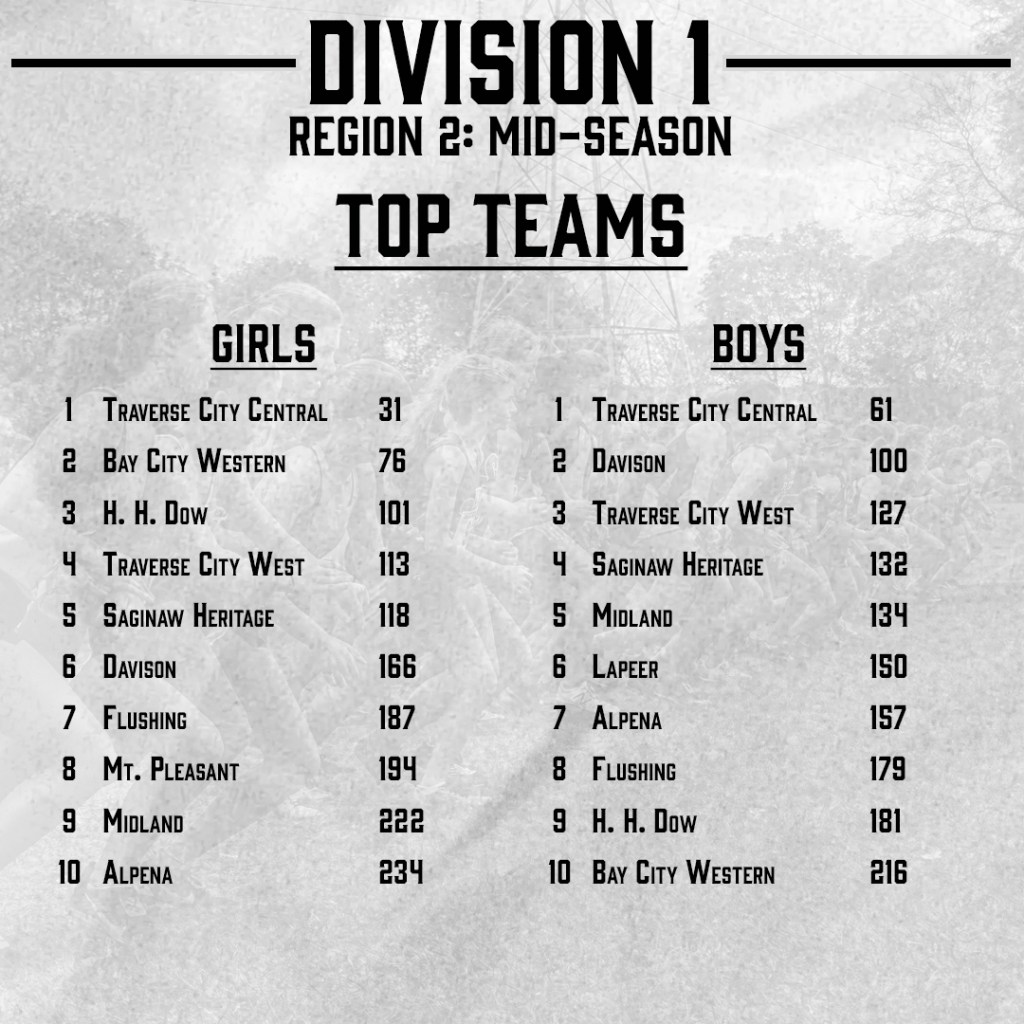 Boys: Traverse City Central, Lapeer, Alpena, Bay City Central, Saginaw Arthur Hill