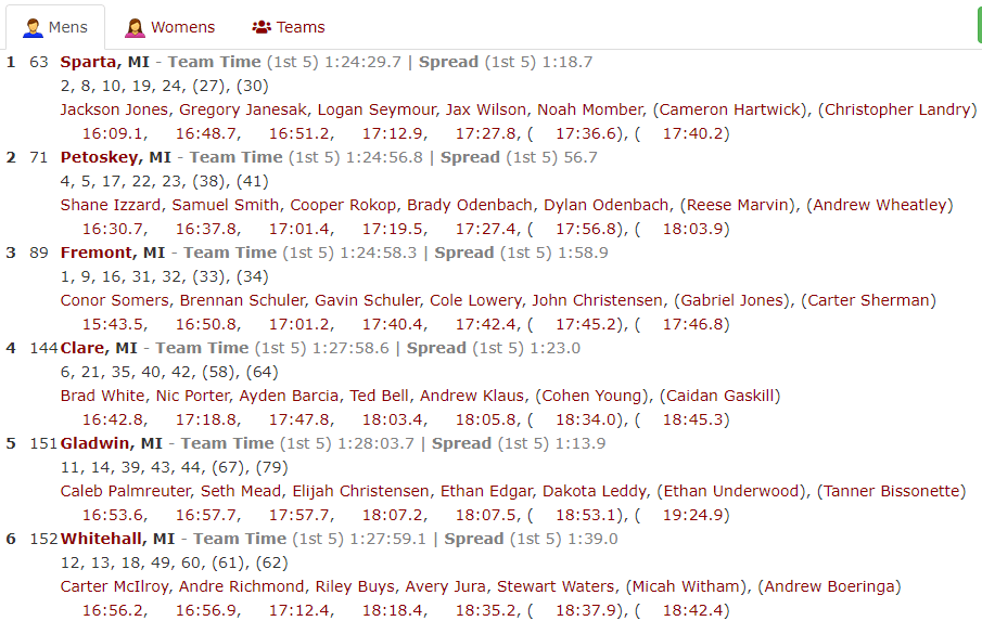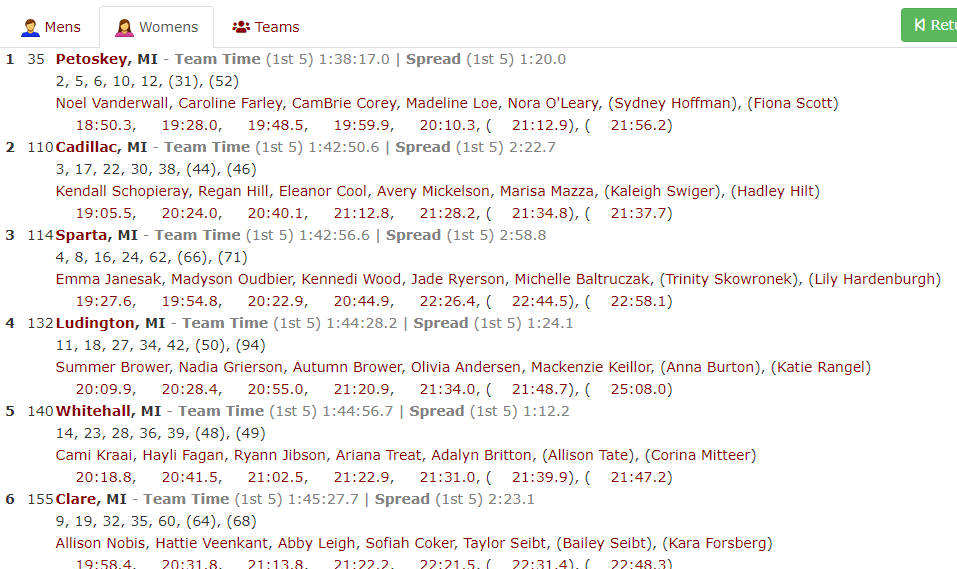 What to Watch For: Is Fremont here to spoil Petoskey’s party? They’ve been ascending (or descending, you can use either verb) as the season has wore on. In the last two weeks, Conor Somers has had his two best races of the year. They’re finding new newcomers and the Schulers have been consistent all along. But Petoskey took a hit at Spartan and have gradually been finding their way back here.