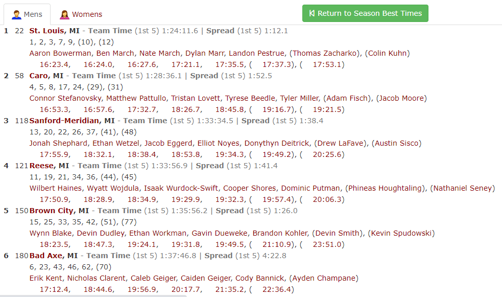 Projected Individual Qualifier Cutoff: 21st. Caro and St. Louis dominate the upper reaches of this region.