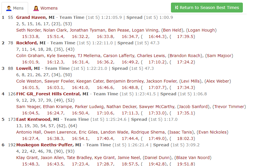 Who wins the girls team title? FHC is best through 4, Grand Haven through 5, but Rockford has the best 5-7 by a longshot.