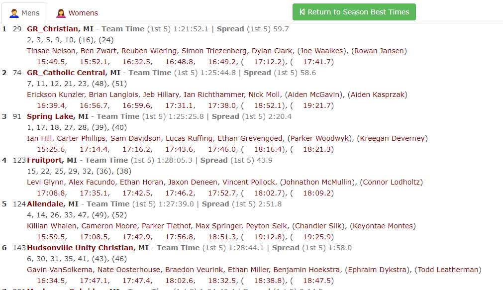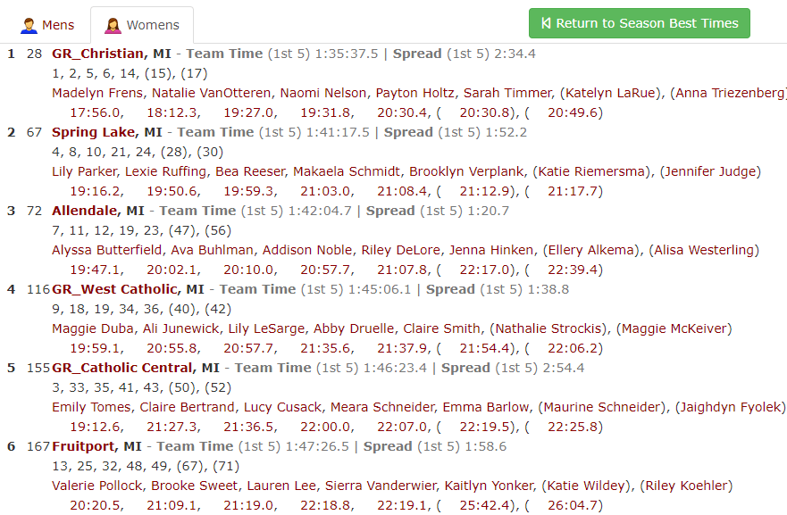 Projected Individual Qualifier Cutoff: 15th. If GRCC or Allendale sneak in, drop this back a few spots, but if it’s Fruitport, a team likely to rely on its pack, this could be lower.