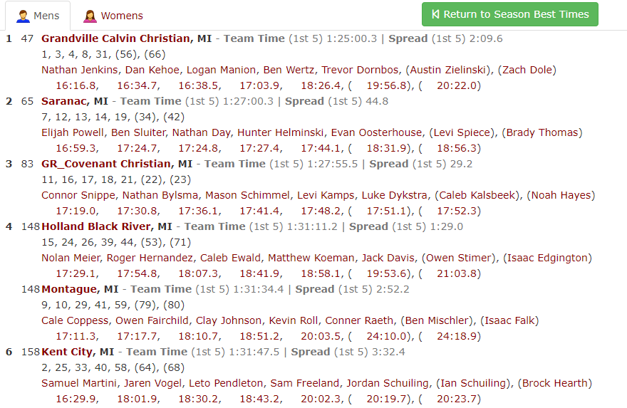 | 34 | 10 | Lilly Weesies | Grandville Calvin Christian | 59.9 |