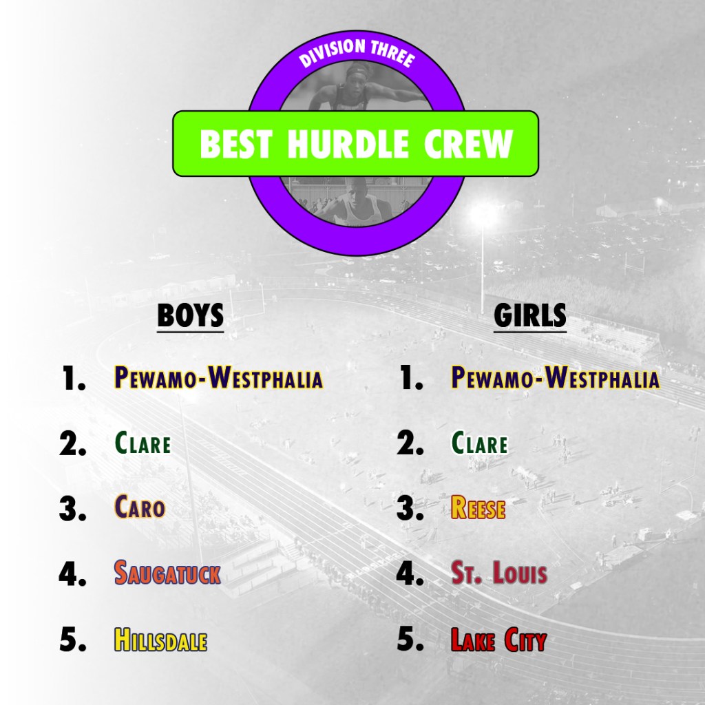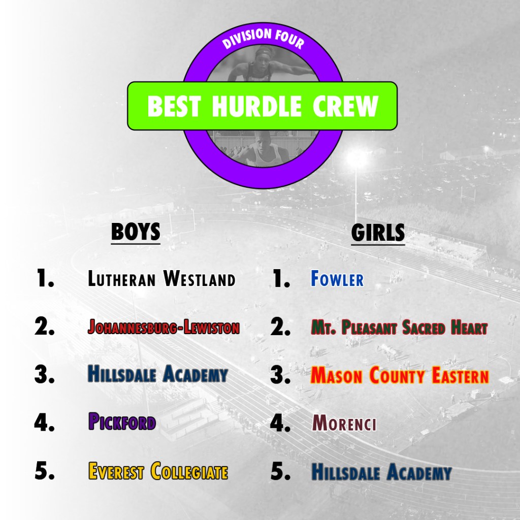 A team must have 3 athletes in both the 100/110h and the 300h The times from those athletes must be from the 2022 Outdoor Season and uploaded to A.net by 10pm Wednesday night. Delayed by a day because work comes first. Those top 3 athletes from an event have their times averaged out, then those averages are ranked from the fastest time to the slowest time (with ties going towards those with the better time on their 3rd hurdler) Those ranks are then added together across the two events with the better-ranked teams having the lowest total In the case of any ties, in the overall standings, I went with the team that had the stronger of their worst category. In each division, I went with the team ranked higher overall – but in the case of Ann Arbor Huron and Rockford, they’re just in a dead heat. I’d love to see a hurdle dual between the Rams and River Rats. This is the same explanation from two weeks ago and they’re still tied. Guess we’ll settle this in early June.