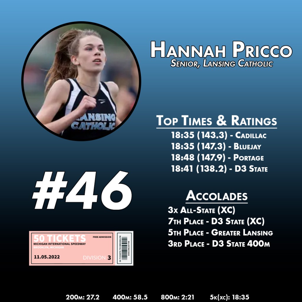 • Hannah has many accolades on the cross course, but track is where she truly shines, a true mid-distance girl