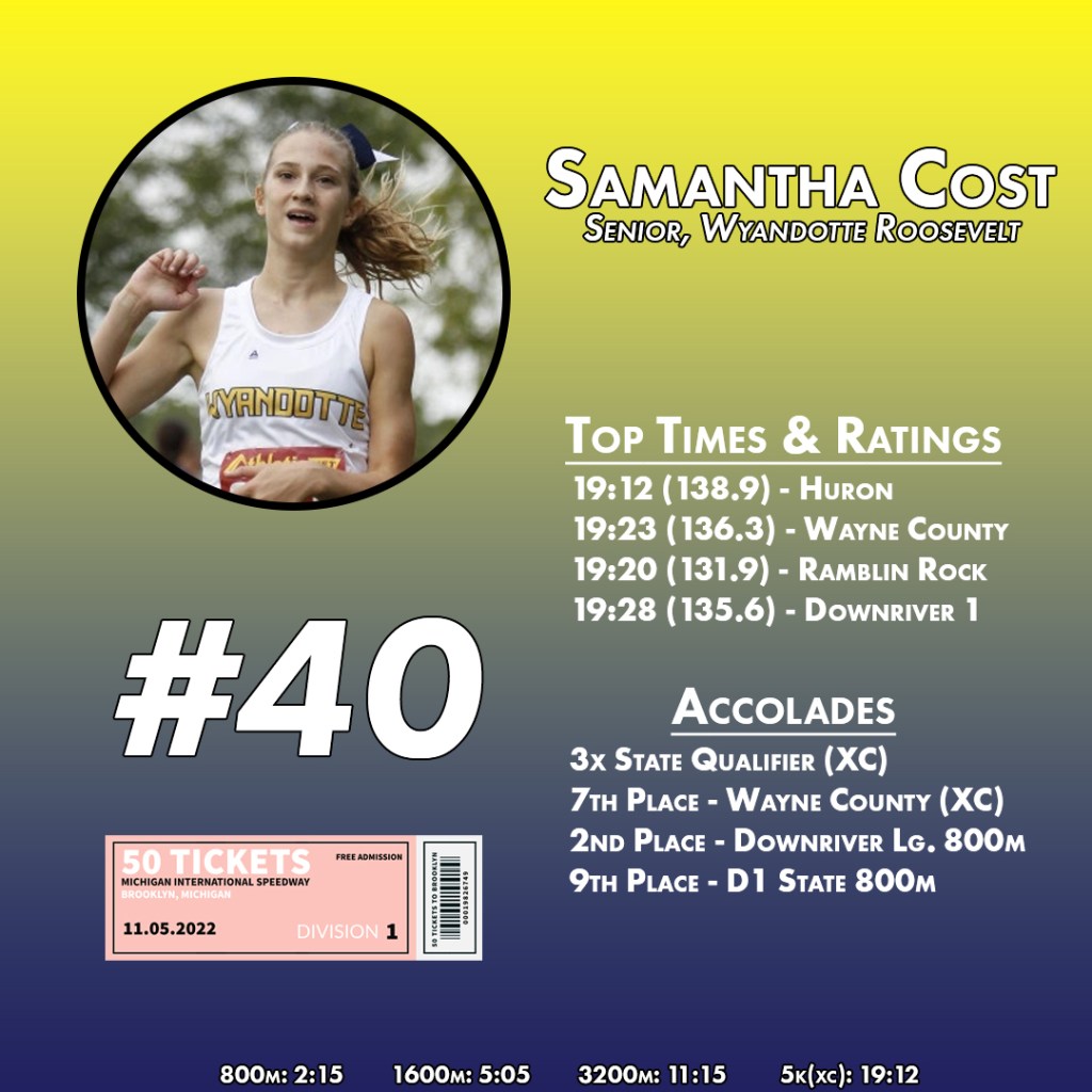 With all these bullet points describing her track season, it might seem as if she’s not had any cross success, that ain’t the case, she’s a 3x State Qualifier, 3x Top-10 in the Downriver League, and twice All-Wayne County
