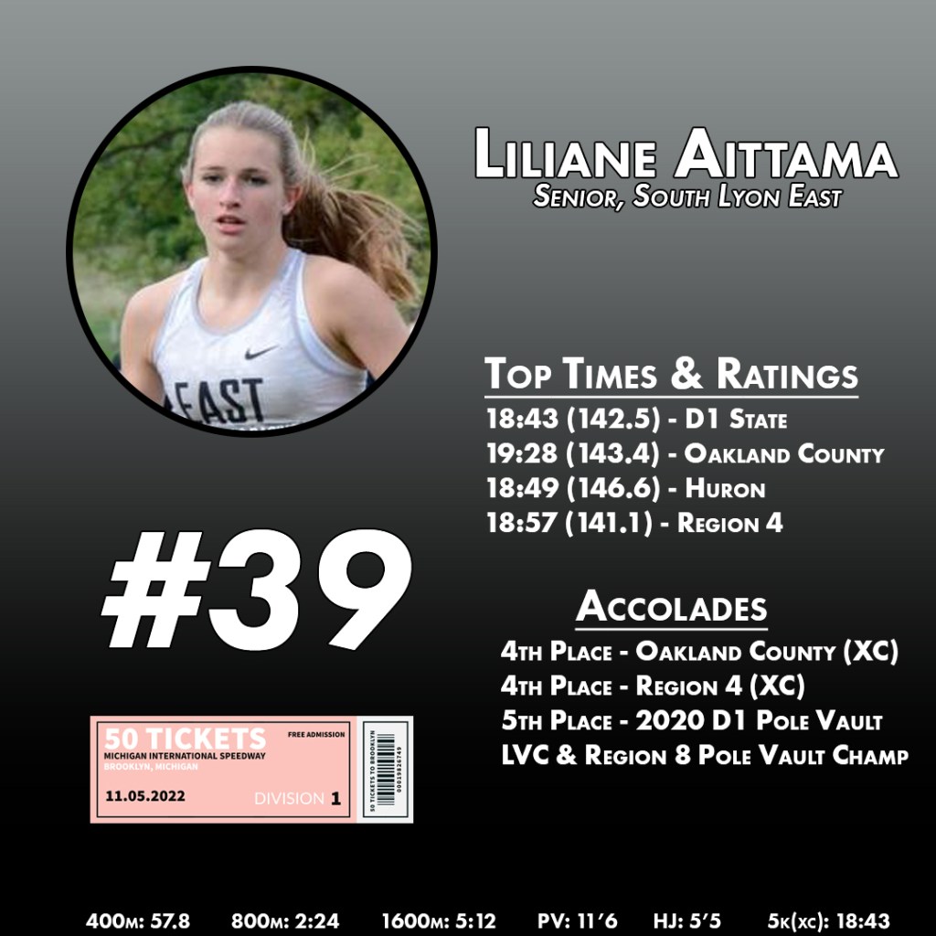 A few weeks ago, I mentioned that these tickets should be thought of as a career achievement award, a celebration of sorts. Athletes such as Liliane are the reason why. She’s well-known in the metro Detroit area as a jack of all trades, a girl who can sprint, jump, and has endurance to boot. Prepping for State following her Region 8 victory in the pole vault, she tore her ACL. That tear won’t permit her to compete this fall, but she deserves mention here. I have a feeling those South Lyon East girls will band together in her absence and will be a force in the LVC and Oakland County scene.