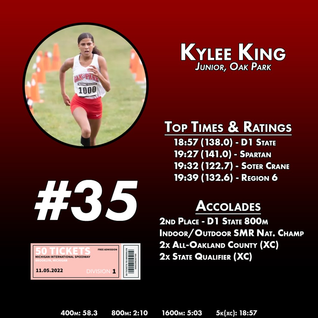 It’s not as if that’s the only time Kylee has shown up in a major race, she’s been a part of multiple National and State title squads both in indoor and outdoor, while running for Motor City