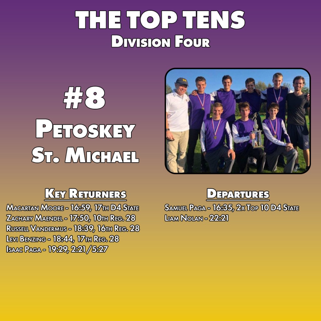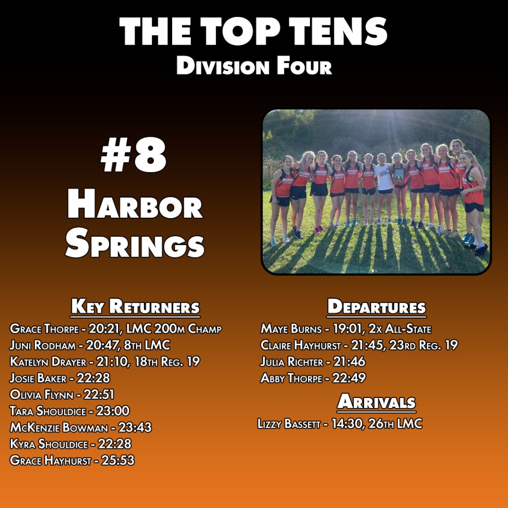 Across the bay, Harbor Springs has seen a steady string of success at the D3 level. So much so that they’ve made eight consecutive state meets and recently have been a fixture in the top-15 there. The move down a division comes with the loss of a few standouts, Maye Burns most notably, but they’ve got depth that should be a boon amongst teams with fewer numbers.