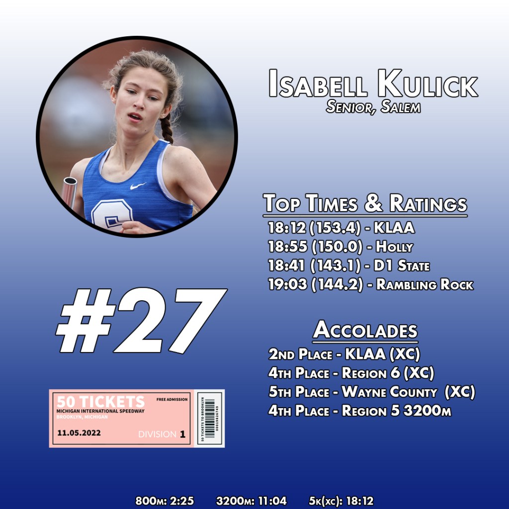 In her storied career, she’s a 3x qualifier for State, twice top-15 at KLAA, twice top-10 at Wayne County