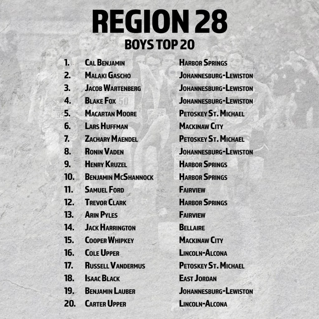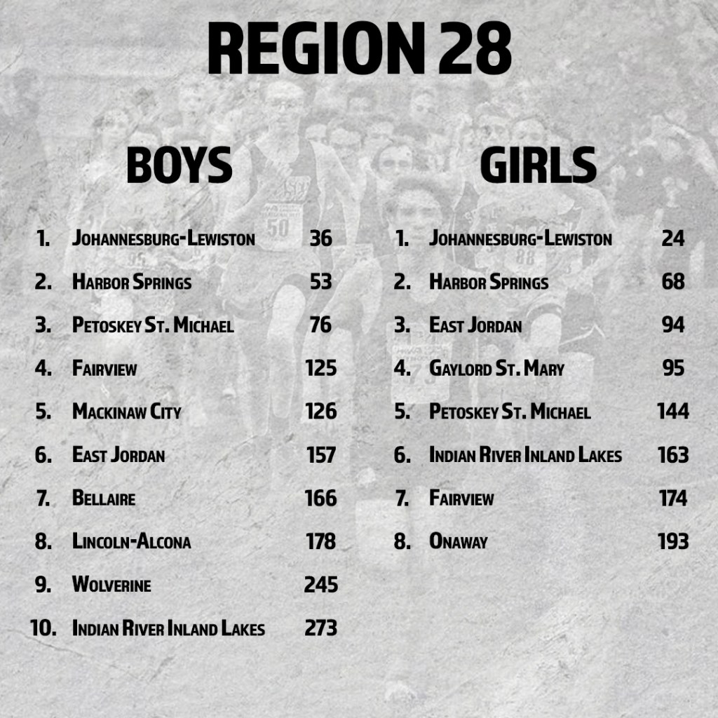 Top 25 Boys Teams: Johannesburg-Lewiston (Top 7), Harbor Springs (Top 7), Petoskey St. Michael (8th)