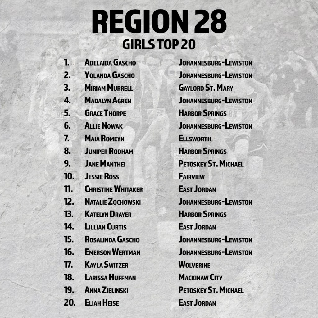 Top 25 Girls Teams: Johannesburg-Lewiston (Top 7), Harbor Springs (8th), East Jordan (24th), Gaylord St. Mary (25th)