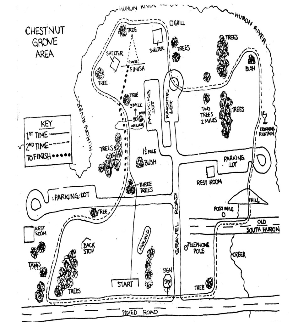A young MIXCSR’s favorite course, it still ranks up there. Two 2400m-ish loops, the final bit a downhill finish. Steep sledding hill before a mile and just after two, other than that, fairly flat. Unless it’s been raining, the footing is great, among the best you’ll get. Has a tendency to run fast in the late season, usually about 10-20 seconds so. About as fair a test as one will get south of Detroit.