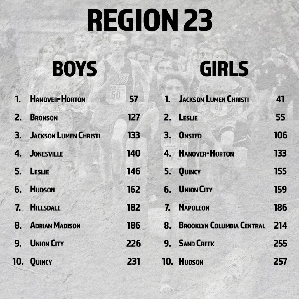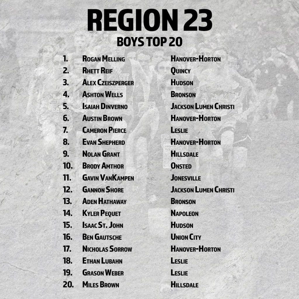 2021 Boys: Bronson (11th), Hudson (17th), Hanover-Horton (16th)