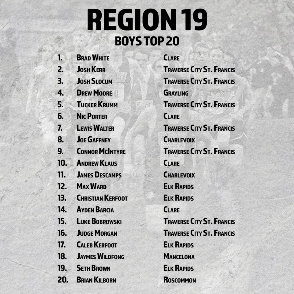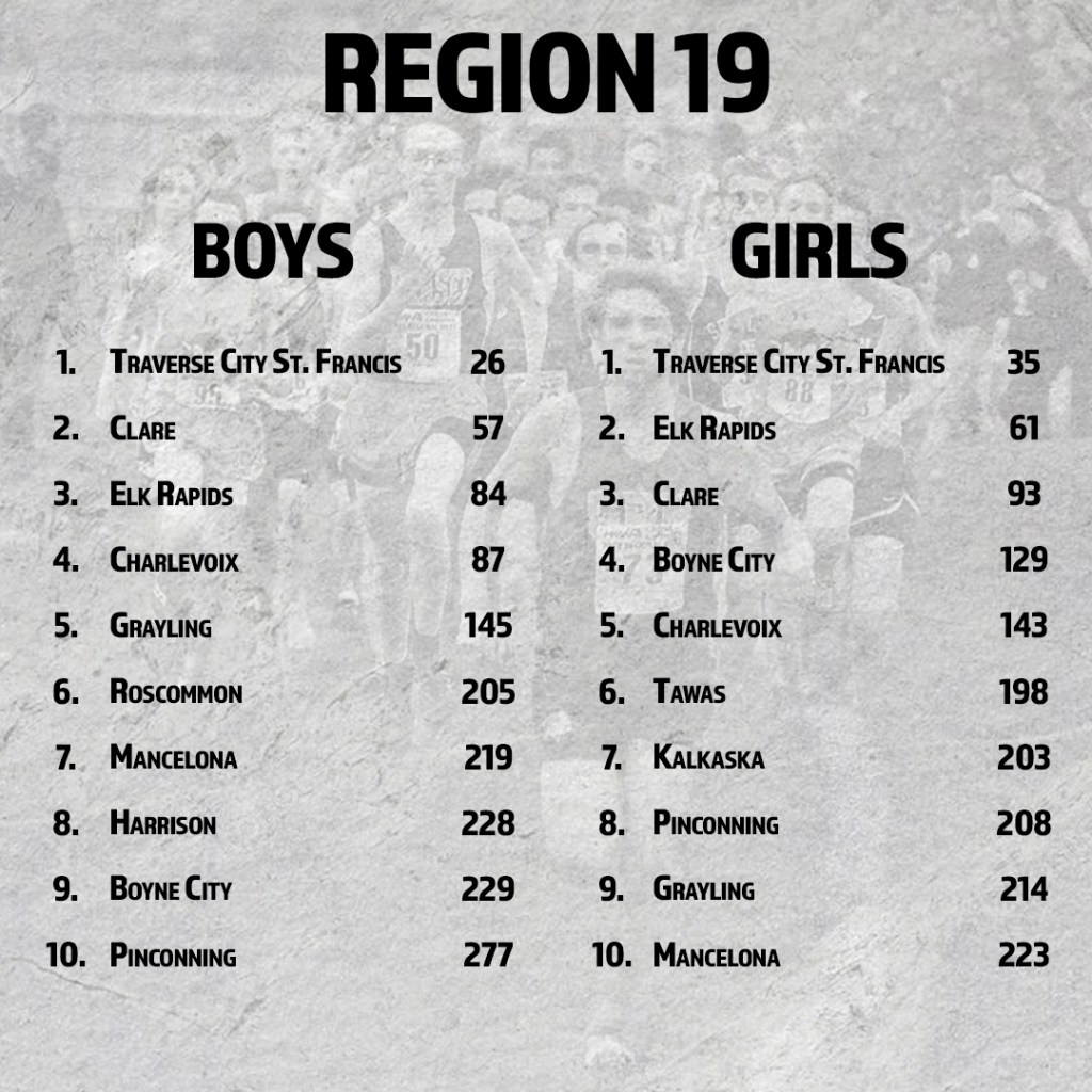 Top 25 Boys Teams: Traverse City St. Francis (Top 5), Clare (Top 5), Elk Rapids (13th), Charlevoix (15th)
