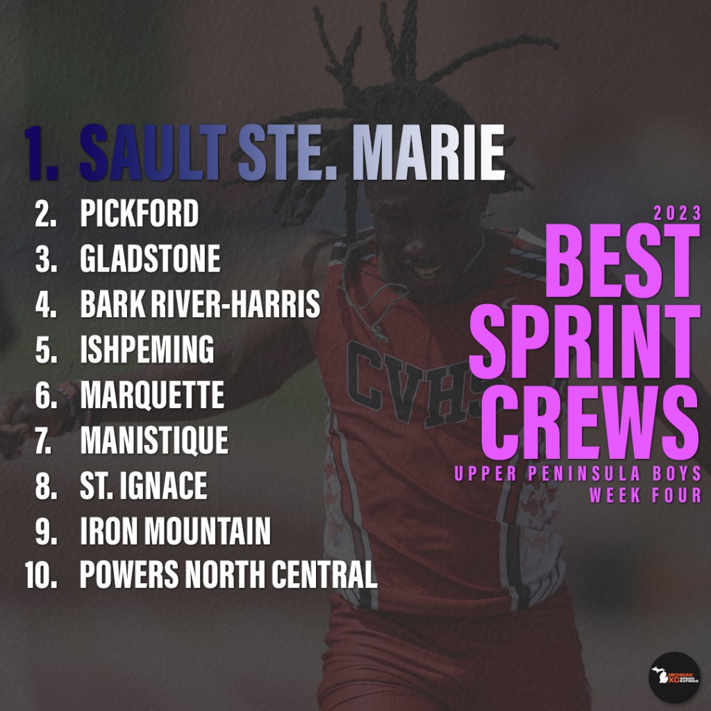 I know, races have been few and far between north of the bridge, but when one holds the top spot in the 100m – 400m, they require mention. Sault Ste. Marie’s Carter Oshelski holds all those spots, doing so in a manner that exceeds his All-State efforts in 2022. His best finish at last year’s UP D1 Finals was a 4th place in the 200m, running a 23.67 into a slight headwind. Already, he’s sub-24 and he’s dropped nearly a second from junior 400m best.