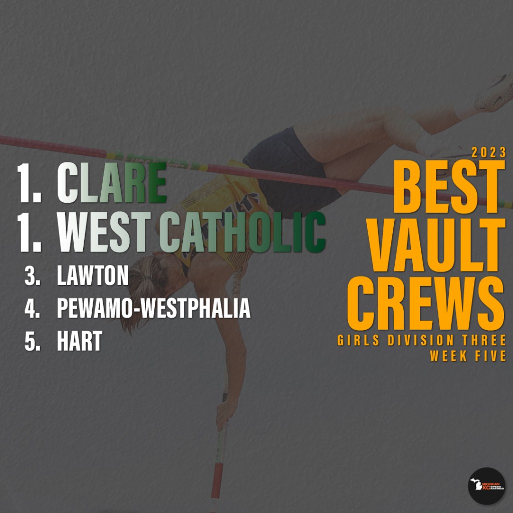 Okay, by the numbers Clare is ahead of West Catholic. The intent of these rankings is to mimic what might happen at our two State Meets (MITCA and MHSAA). The MITCA meet values depth, the MHSAA meet values the teams with the absolute best individuals. Either way, West Catholic, with the two best vaulters in D3, will likely score the most points of any D3 team at either meet. Clare is the only D3 team with four individuals over the regional additional qualifier. By my philosophy and reality, West Catholic needs to be in first in some capacity. So I made the executive decision to override the point totals and put West Catholic in first as well.