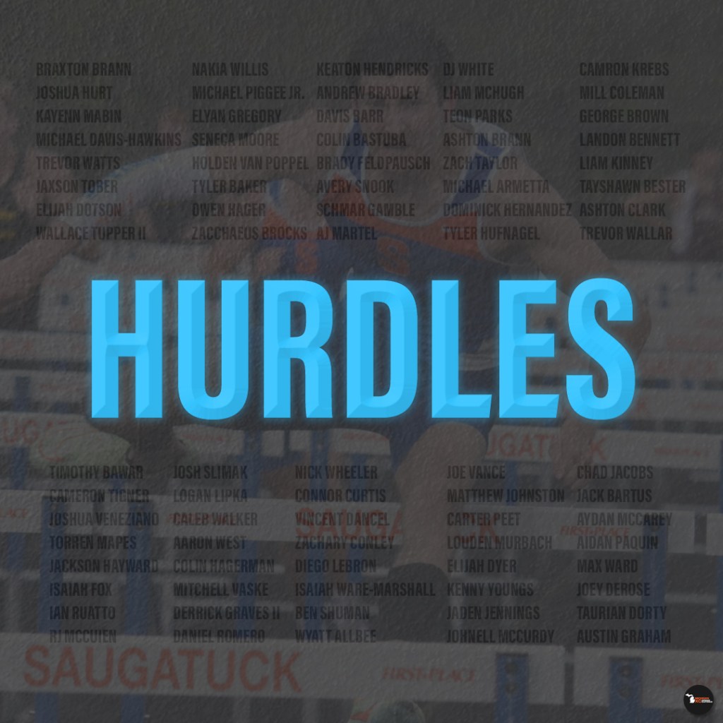 The past two years, we’ve seen varying levels of hurdle races for Braxton Brann. As a sophomore he placed 10th in the 300h, as a junior he concentrated on the short sprints, nabbing All-State in each. As a senior, it appears he’s all-in on the high hurdles. He still has that 100/200m speed, ranking among the best in the State for each respective event. But the hurdles are where we’ve seen the most progress. Undefeated on the year and in his regional championship, he blasted through the 14.00 barrier. Hurdle and Cass Tech Technician Michael Davis-Hawkins has had a year in the longer race, sub-40 each time out, even reaching down as low as sub-38 to capture the Region 7 crown. There are plenty of other competitors right there in the mix, doubling in both: Wallace Tupper II, Kayenn Mabin, Seneca Moore, Nakia Willis, Josh Hurt, amongst many others.