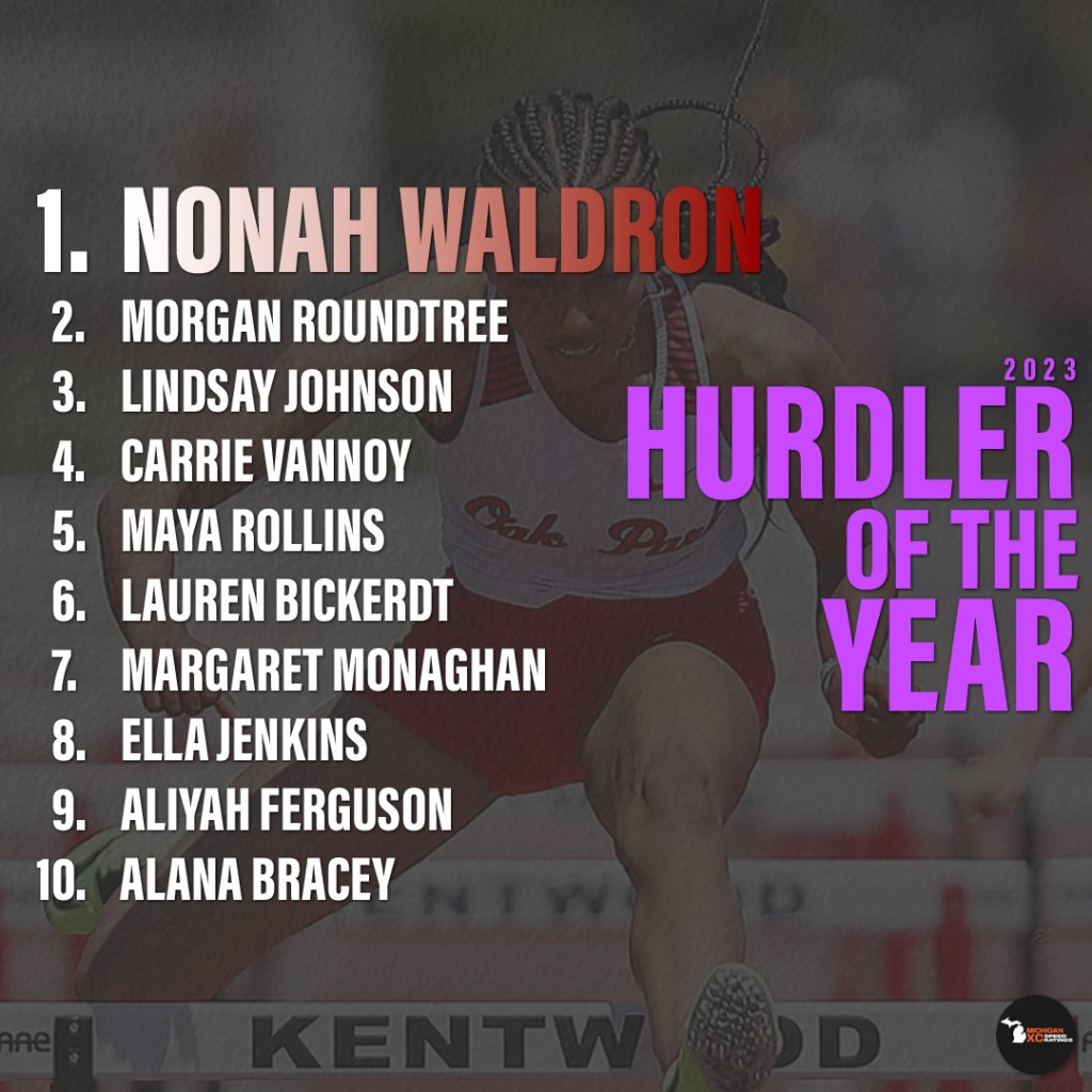 | 12 | Nonah Waldron | 40.37 | 572 | 300h | Division 1 State Champ and State Record holder |