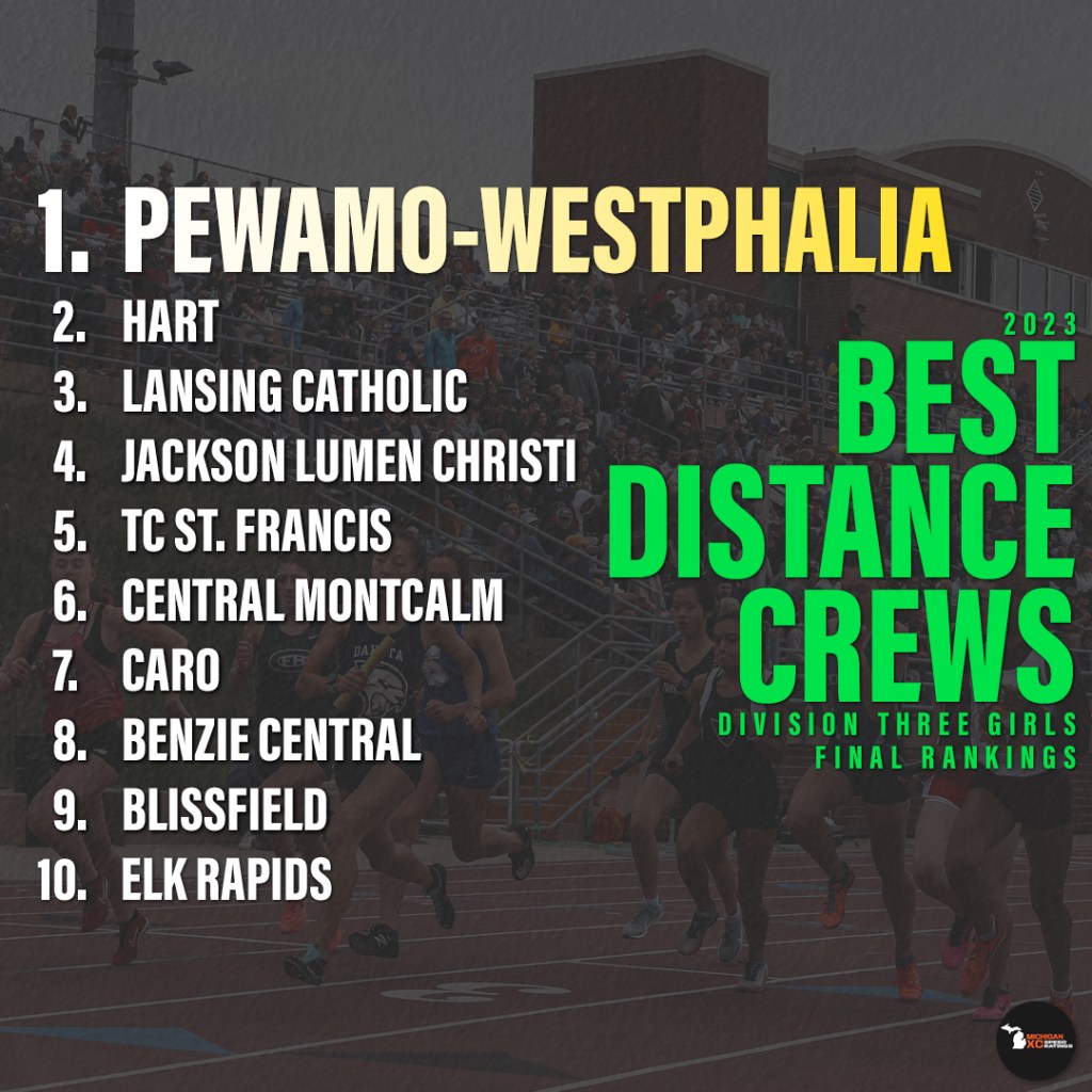 As always, check out Jeff Hollobaugh’s michtrack.org for the official lists for each event. Give him a few days to process everything from this incredible season, as many of our great athletes have hit marks that will stand the test of time.