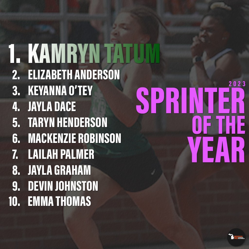 | 11 | Jayla Graham | 24.85 | 452 | 200m | Detroit City Champion |